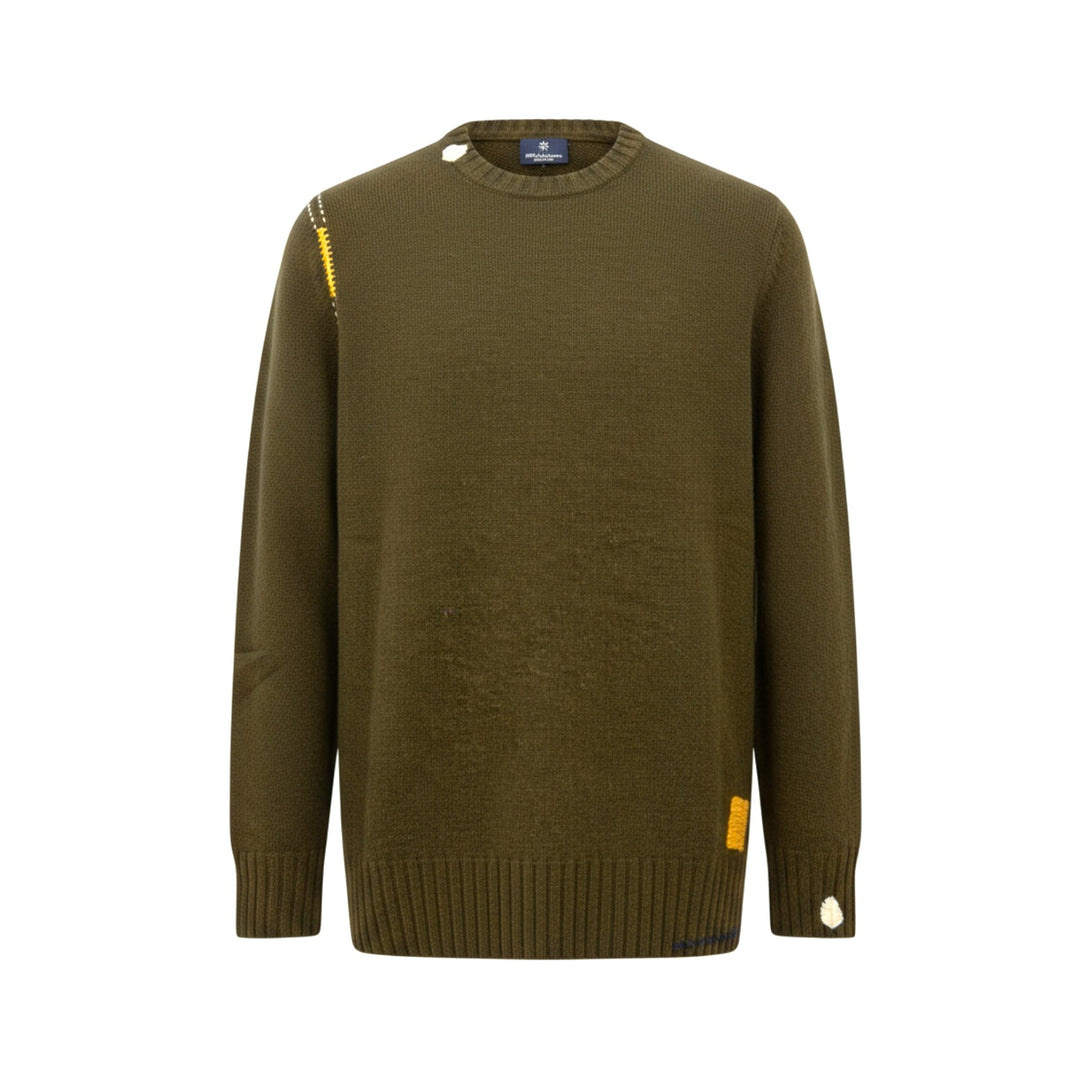 CREW NECK WOOL SWEATER WITH ASPEN GREEN EMBROIDERY
