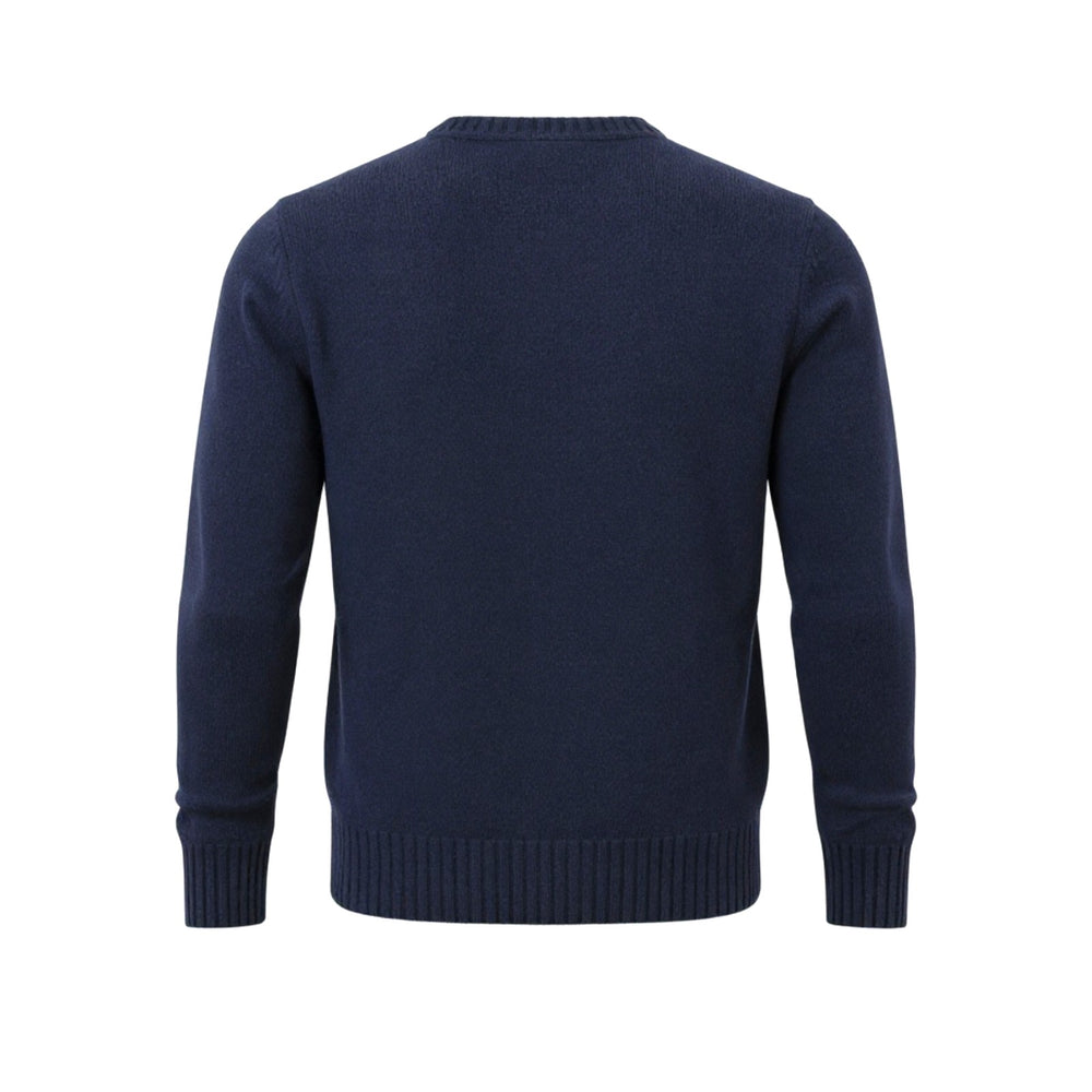 CREW NECK WOOL SWEATER WITH BLUE BOMBARDINO EMBROIDERY