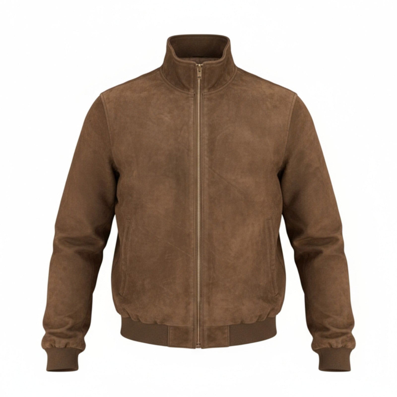 DARK BROWN GENUINE NUBUCK LEATHER ZIP-UP JACKET
