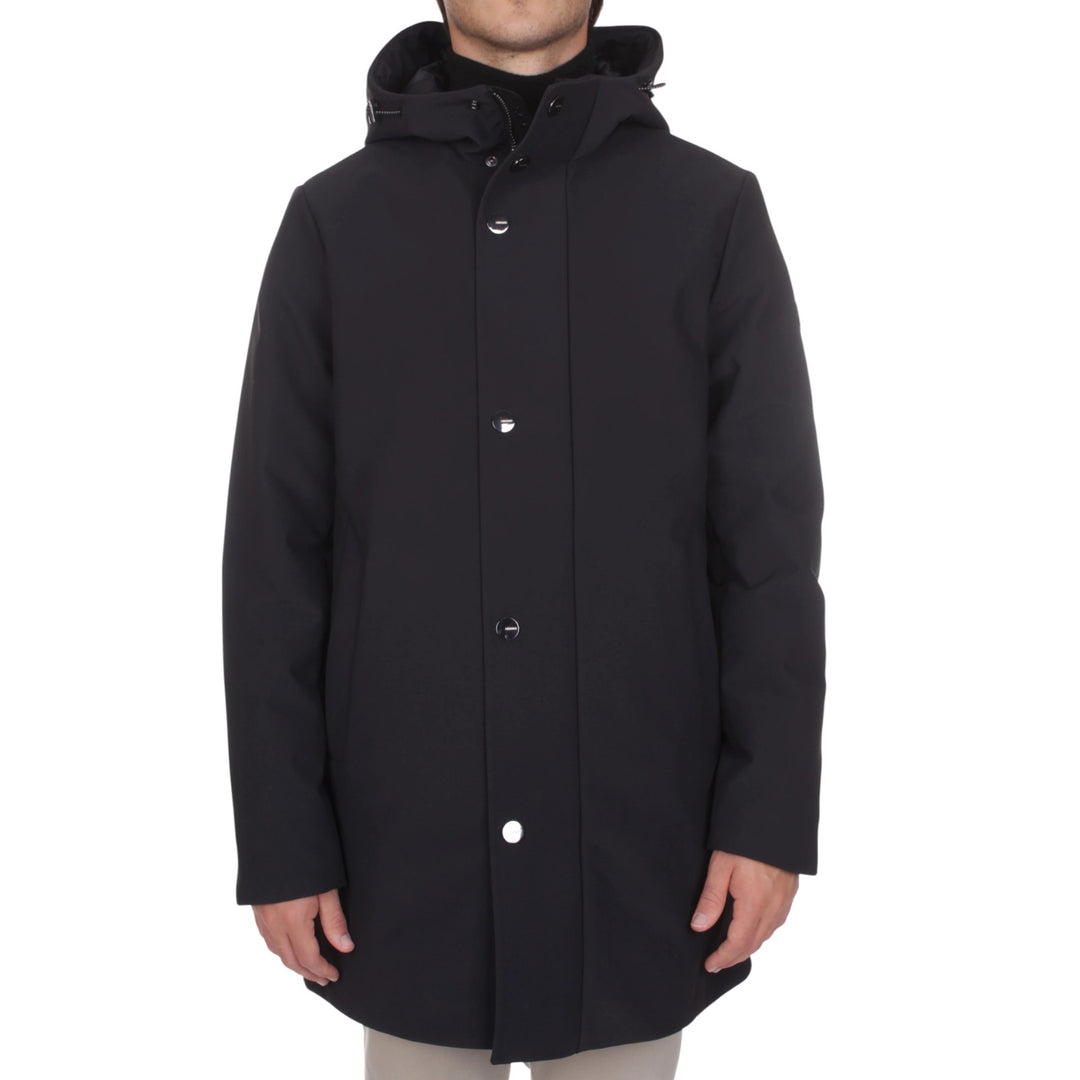 I capi della collezione utilizzano diverse soluzioni tecniche per garantire prestazioni elevate. Molti modelli sono realizzati in tessuto softshell in poliestere tecnico, un materiale che combina impermeabilità e resistenza al vento mantenendo traspirabilità. Alcuni parka presentano costruzioni in nylon stretch abbinato a elastane, offrendo libertà di movimento e vestibilità confortevole. Le fodere felpate interne migliorano l'isolamento termico, mentre alcuni modelli imbottiti utilizzano poliestere riciclato per garantire calore senza compromettere la leggerezza. Un cappotto sartoriale in lana vergine completa la proposta con un'opzione più formale ma altrettanto performante in termini di isolamento naturale.