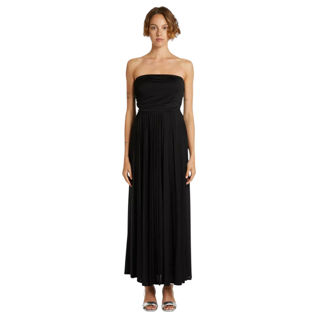 Gli abiti in jersey rappresentano la categoria più versatile, combinando elasticità e comfort con silhouette che seguono le linee del corpo senza costringere. Ideali per contesti professionali e smart casual, si prestano a stratificazioni con giacche e accessori, funzionando dal giorno alla sera con semplici cambi di styling. I tubino in jersey spalmato offrono eleganza strutturata per ufficio ed eventi formali. Gli abiti lunghi in viscosa e tessuti fluidi privilegiano movimento e drappeggio, perfetti per occasioni speciali, cerimonie ed eventi estivi. Le lunghezze maxi conferiscono eleganza senza tempo, mentre dettagli come schiena nuda o incroci aggiungono sensualità controllata. I kimono lunghi reinterpretano l'estetica orientale con stampe animalier e fantasie decorative, funzionando come copricostume, abito da spiaggia o capo statement per look bohémien. I tank dress e modelli corti offrono freschezza estiva e versatilità casual.