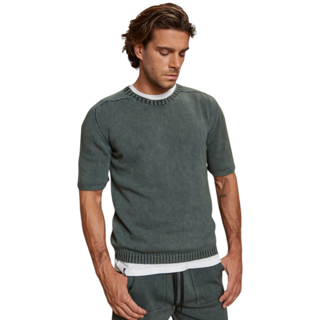 MAGLIA GIROCOLLO M/M TINTO STONE PTO RISO PETROLIO